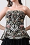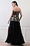Featuring a black strapless corset in chanderi and organza base with floral motif, silk thread and zardosi embroidery. It is paired with a skirt. Accentuate it with statement jewellery and heels for a festive look or sangeet ceremony.