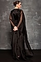 Featuring a blue dress in organza silk base with embroidery. It is paired with a black cape. Accentuate it with silver or swarovski jewellery and heels for a festive occasion.