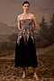 Featuring a black strapless dress in velvet base with embroidery. Accentuate it with stud earrings, embellished heels and a clutch for a cocktail ceremony or evening soirees.