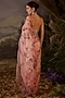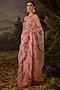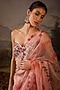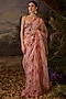 Featuring a blush pink saree in cotton silk base with floral and zardosi embroidery. It is paired with an off-shoulder blouse. Accentuate it with zircon jewellery, heels and a clutch for a sangeet or cocktail ceremony.