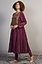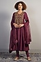 Featuring a deep wine kurta in tabby silk base with zardosi embroidery. It is paired with pants and a sheer dupatta. Style it with dangler earrings and block heels a festive occasion, cultural event, wedding or engagement ceremony.