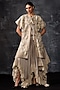 Featuring a grey kaftan in linen silk base with tie-up detail. It is paired with a slip. Accentuate it with silver or swarovski jewellery and heels for a festive occasion.
