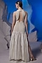 Featuring an ivory gown in cotton and cotton silk base. Accentuate it with dangler earrings, a sleek bun, a clutch and block heels for a reception or cocktail soirees.