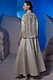 Featuring an ivory top in cotton silk base. It is paired with a skirt. Accentuate it with dangler earrings, a sleek bun, a clutch and pencil heels for a reception or cocktail soirees.