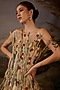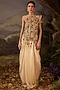 Featuring an ivory corset in cotton silk base with floral embroidery. It is paired with a draped dhoti skirt. Accentuate it with stud earrings, heels and a clutch for a sangeet or an engagement ceremony.