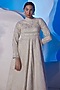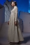 Featuring an off-white gown in cotton silk and organza base. Accentuate it with dangler earrings, a sleek bun, a clutch and wedges for a reception or cocktail soirees.
