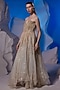 Featuring an ivory tube gown in organza silk and cotton base. Accentuate it with dangler earrings, a sleek bun, a clutch and pencil heels for a reception or cocktail soirees.