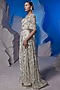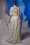 Featuring an ivory one-shoulder gown in organza silk and cotton base. Accentuate it with dangler earrings, a sleek bun, a clutch and wedges for a reception or cocktail soirees.
