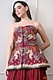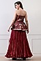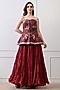 Featuring a maroon strapless top in net base with silk thread, zardosi and floral embroidery. It is paired with a skirt. Accentuate it with statement jewellery and heels for a festive look or sangeet ceremony.
