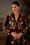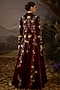 Featuring a maroon jacket style gown in velvet and cotton silk base with silk and zari yarn embroidery, including a mandarin collar. Accentuate it with stud earrings, heels and a clutch for a sangeet or an engagement ceremony.