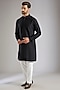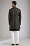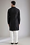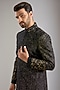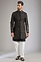 Featuring a black indowestern in silk base. It is paired with a kurta and pants. Perfect wear for a festive occasion, wedding or engagement ceremony, exuding traditional charm and elegance.