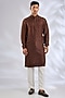 Featuring a brown sherwani in silk base. It is paired with a kurta and pants. Perfect wear for a wedding, sangeet or engagement ceremony, exuding charm and elegance.