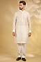 Featuring an ivory sherwani in silk base. It is paired with a kurta and pants. Accentuate it with juttis and a matching stole for a stylish ensemble, ideal for daytime weddings or engagement ceremonies.