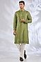 Olive Green Silk Sherwani Set
