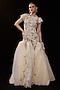 Featuring an off-white gown in cotton silk base with cap-sleeves and 3D floral embellishment. Pair with statement danglers and stilettos for a glamorous appeal. Perfect for cocktail nights, receptions, or evening galas.