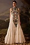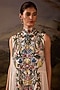 Featuring an off-white maxi dress in cotton silk base with embroidery and a high-neckline. Accentuate it with stud earrings, heels and a clutch for a boho themed party or an engagement ceremony.