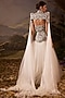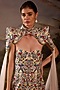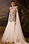 Featuring an off-white cape gown in cotton silk base with floral embroidery. It is paired with a tulle skirt having silk thread and zardosi embroidery. Accentuate it with stud earrings, heels and a clutch for a sangeet or an engagement ceremony.