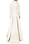 Featuring an off white gown in cotton silk base with front overlap layer and highlighted using silk thread floral motif embroidery.