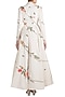Featuring an off white jacket gown in cotton silk base with silk thread and zari embroidery.