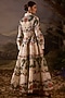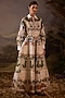 Featuring an off-white gown in linen silk base with floral embroidery. Accentuate it with zircon jewellery, a clutch bag and heels for a cocktail, reception or evening celebrations.