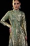Featuring an olive green structured gown in lurex base with a high collar. Accentuate it with zircon jewellery and embellished heels for evening soirees or cocktail parties.