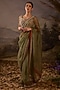 Olive Green Organza Silk Floral Embroidered Saree Set