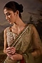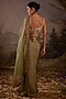 Featuring an olive green saree in organza silk base with floral embroidery. It is paired with an embellished blouse. Accentuate it with zircon jewellery, heels and a clutch for a mehendi ceremony.