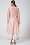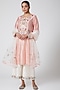 Featuring a peach kurta in cotton silk base with zardosi embroidery. It is paired with contrasting white palazzo pants and an organza dupatta.
