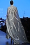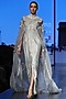 Featuring a powder blue cape gown in organza and cotton silk base with thread embroidery.