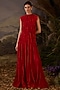 Red Cotton Silk Lace Embroidered Maxi Dress