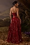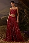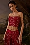 Featuring a red tube top in cotton silk base with 3D zardosi embroidery. It is paired with an organza silk embroidered skirt. Accentuate it with zircon jewellery, heels and a clutch for a wedding or sangeet ceremony.