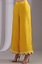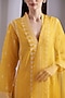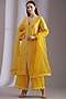 Featuring a sunshine yellow kurta in cotton silk base with aari embroidery. It is paired with matching scalloped pants and an organza dupatta.