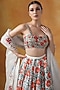 Featuring a white and orange lehenga in cotton silk base with print. It is paired with a matching embroidered blouse and an organza dupatta.