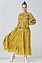 Yellow Cotton Silk Floral Embroidered Tiered Maxi Dress