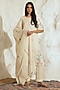 Featuring an ivory kurta in mul mul base with floral embroidery. It is paired with straight pants and a dupatta. Accentuate with statement jewellery and heels for a festive occasion.