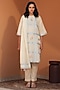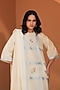 Featuring an ivory kurta in mul mul base with floral embroidery. It is paired with straight pants and a dupatta. Accentuate with statement jewellery and heels for a festive occasion.