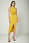 Featuring a yellow bodycon dress in jersey and lycra satin base. It has cut out detailing around the neck and waist wrap bands.
