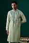 Featuring a mint kurta in tussar base with resham, threadwork, hand and machine embroidery. It is paired with spun cotton pants. Perfect wear for a festive occasion, wedding or engagement ceremony, exuding charm and elegance.