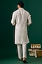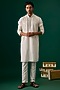 Featuring an off-white kurta in tussar base with resham, threadwork, hand and machine embroidery. It is paired with spun cotton pants. Perfect wear for a festive occasion, wedding or engagement ceremony, exuding charm and elegance.