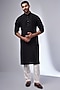 Featuring a black handcrafted kurta in pure silk base with cutdana hand embroidery. It is paired with pants. Style it with a pair of mojaris and some accessories for sangeet ceremonies or festive occasions.