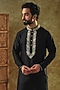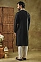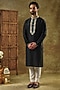 Featuring a black handcrafted kurta in tussar base with resham embroidery. It is paired with pants. Perfect wear for pooja ceremonies or festive occasions.