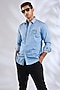 Featuring a blue handcrafted shirt in cotton lycra base with aari embroidery. Style it with pants and shoes for casual outings or semi-formal occasions.