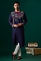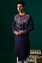 Featuring a blue kurta in tussar base with resham, threadwork hand and machine embroidery. It is paired with spun cotton pants. Perfect attire for a festive occasion, wedding or engagement ceremony, exuding traditional charm and timeless elegance.