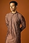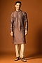 Featuring a brown kurta in silk base with embroidery. It is paired with pants. Accentuate it with kolhapuris or embroidered juttis for an elegant yet easy going look, perfect for pooja ceremonies, festive gatherings or cultural celebrations.