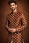 Featuring a camel brown sherwani in viscose blend base. Style it with pants and mojaris for a wedding or engagement ceremony.