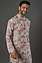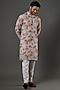 Featuring a grey kurta in linen base with katha work and print. It is paired with contrasting pants.