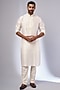 Featuring an ivory handcrafted kurta in pure silk base with cutdana hand embroidery. It is paired with pants. Style it with a pair of mojaris and some accessories for sangeet ceremonies or festive occasions.