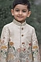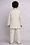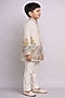 Featuring an ivory kurta for boys in tussar base with hand and resham thread work. It is paired with spun cotton pants. Style it with juttis and a watch for a festive occasion or wedding ceremony.