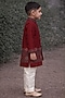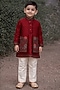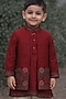 Red Raw Silk Thread Work Indowestern Set For Boys