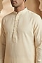 Featuring a light yellow kurta in chanderi base. Style it with pants and mojaris for a festive occasion, haldi ceremonies or family functions.
